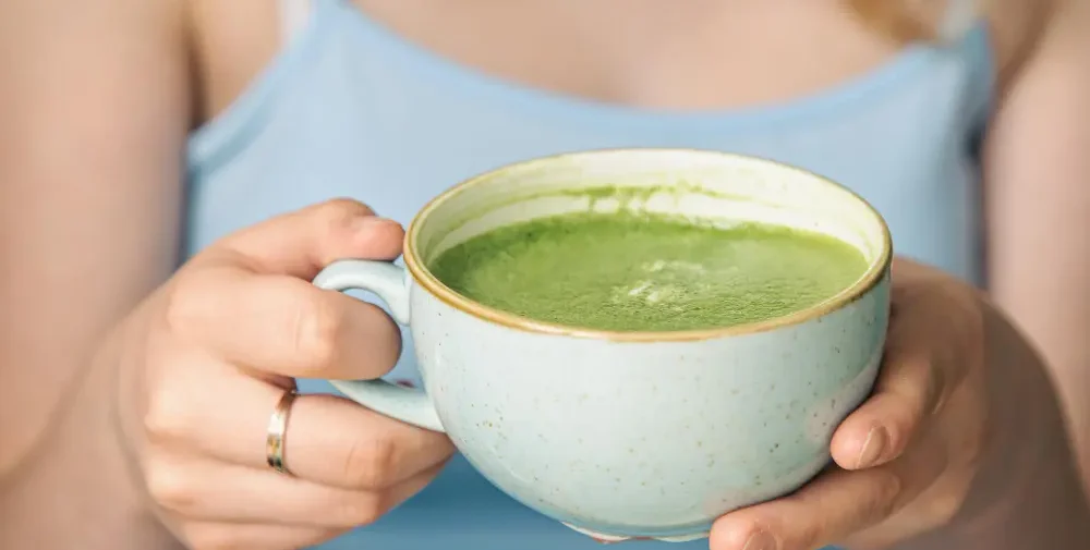 O matcha é um chá verde em pó com alta concentração de antioxidantes, além de fornecer energia limpa, foco e efeito termogênico. Ele ajuda a acelerar o metabolismo e ainda reduz o estresse oxidativo causado pela rotina.